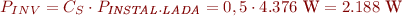 Com que tots els consums de la instal·lació s’alimenten amb subministrament en CA, el rendiment global que emprarem en els nostres càlculs és de 0,75: