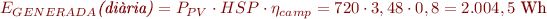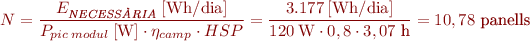 I aplicant un rendiment del camp fotovoltaic de 0,8 obtenim 10,78 panells: