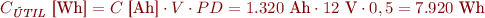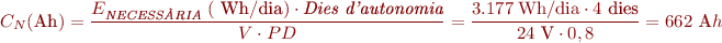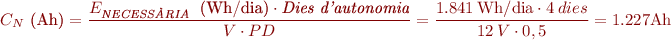 Podem calcular la capacitat de la bateria amb l’expressió següent: