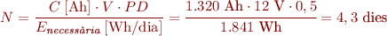 Una bateria amb una capacitat útil de 1.000 Wh i un consum diari de 200 Wh tindrà una autonomia de 5 dies.