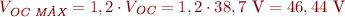 - VOC GEN = 6 · VOC = 6 · 38,4 V = 230,4 V