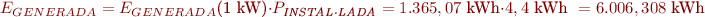 L’energia diària generada per la instal·lació és la suma d’energies que genera cada cadena fotovoltaica: