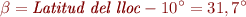 La inclinació recomanada a totes les poblacions de Catalunya és d’uns 30 ° per aquest tipus d’instal·lació. La latitud de la ciutat de Tarragona és de 41,7°, que li correspon una inclinació òptima (β) de 31,7 °: