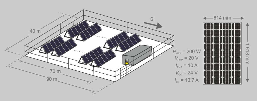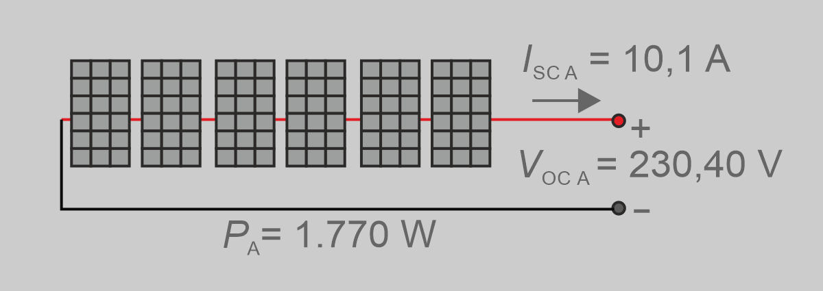Les característiques del camp fotovoltaic que resulten de l’associació en sèrie, les quals les podeu veure resumides en la figura, són les següents: