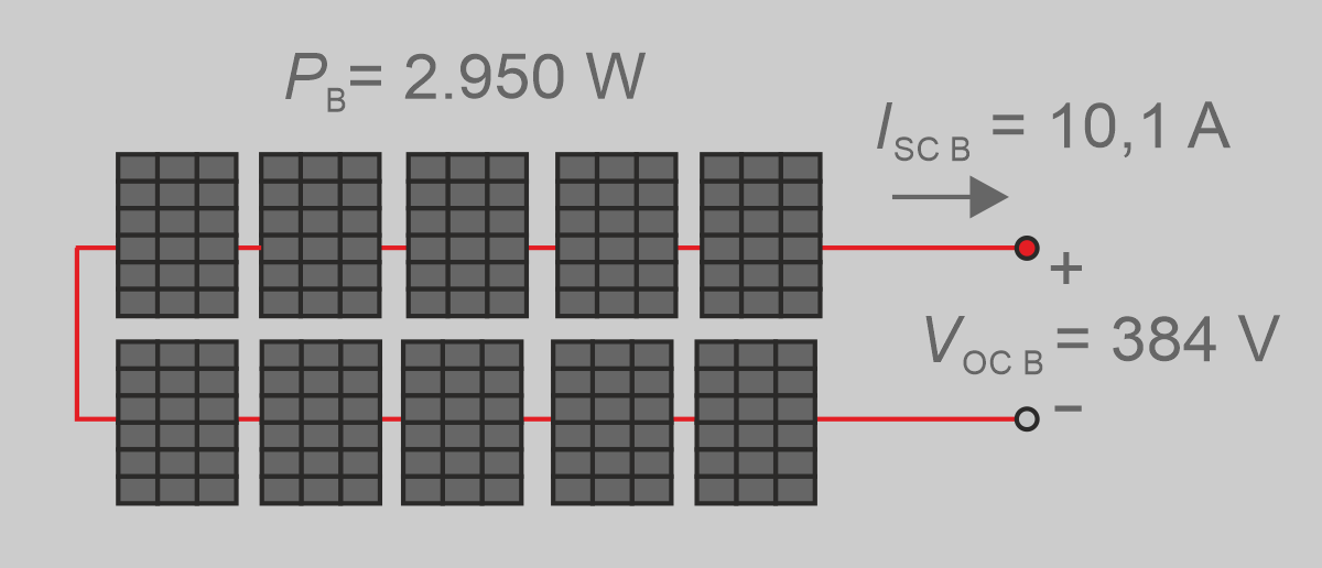 - PMÀX GEN = N·PMÀX = 10 · 295 W = 2.950 W