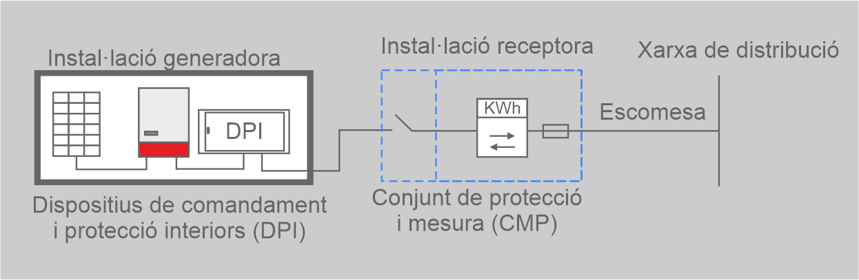 Com a exemple, la figura mostra el punt de connexió a la xarxa d’una instal·lació d’autoconsum individual.