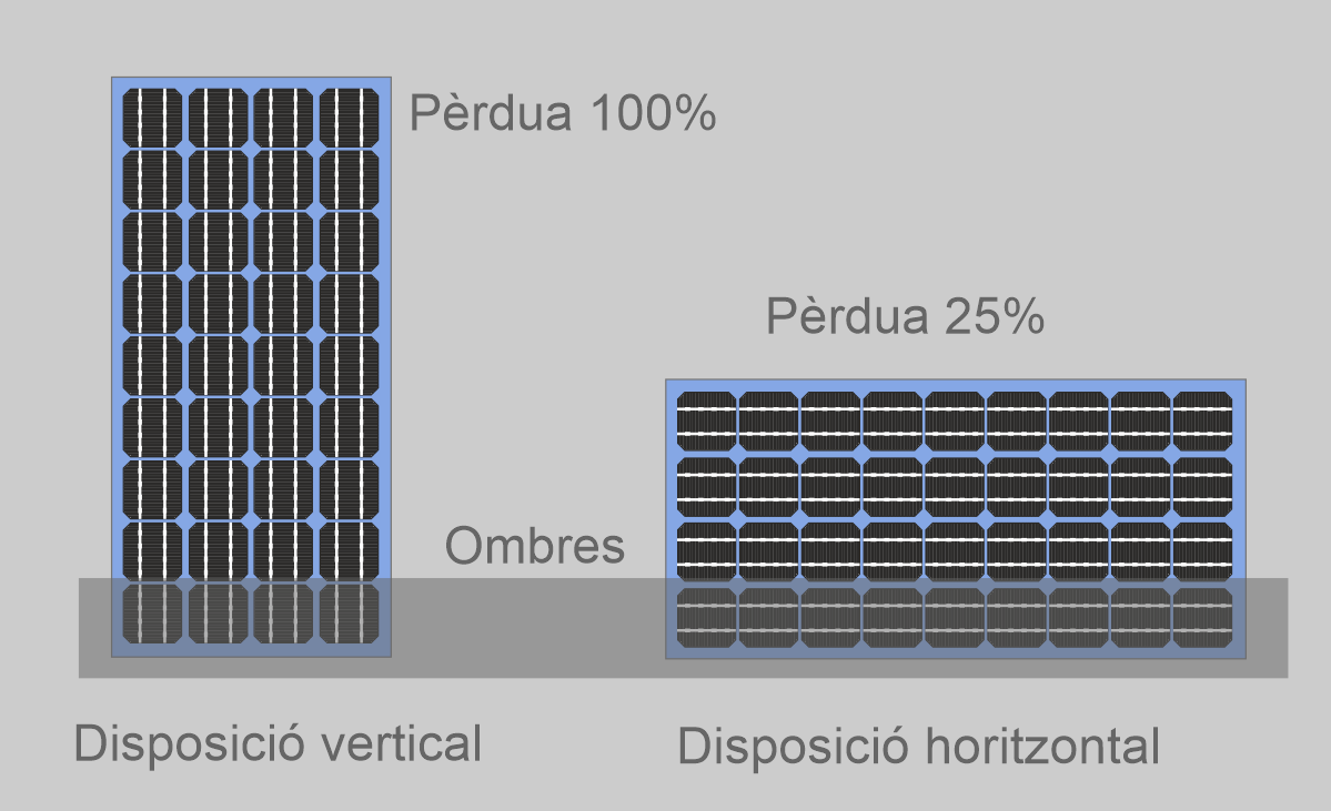 Per tal d’evitar les ombres i realitzar el millor aprofitament solar possible, caldrà definir l’espai entre els obstacles de la teulada i les fileres de panells.
