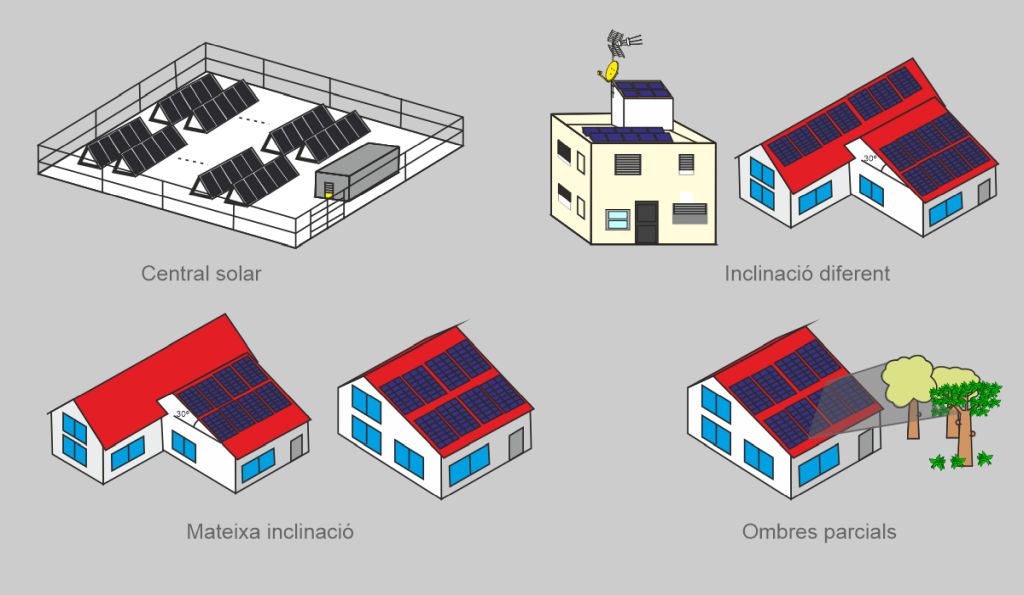 Les diferents tipologies d’instal·lacions solars fotovoltaiques connectades a la xarxa són les següents: