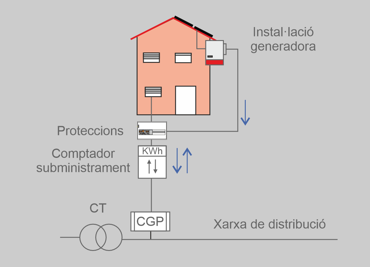 Les instal·lacions generadores de venda d’energia han d’implementar un comptador d’energia d’injecció a la xarxa elèctrica per comptabilitzar l’energia generada per la instal·lació i la que consumeix.