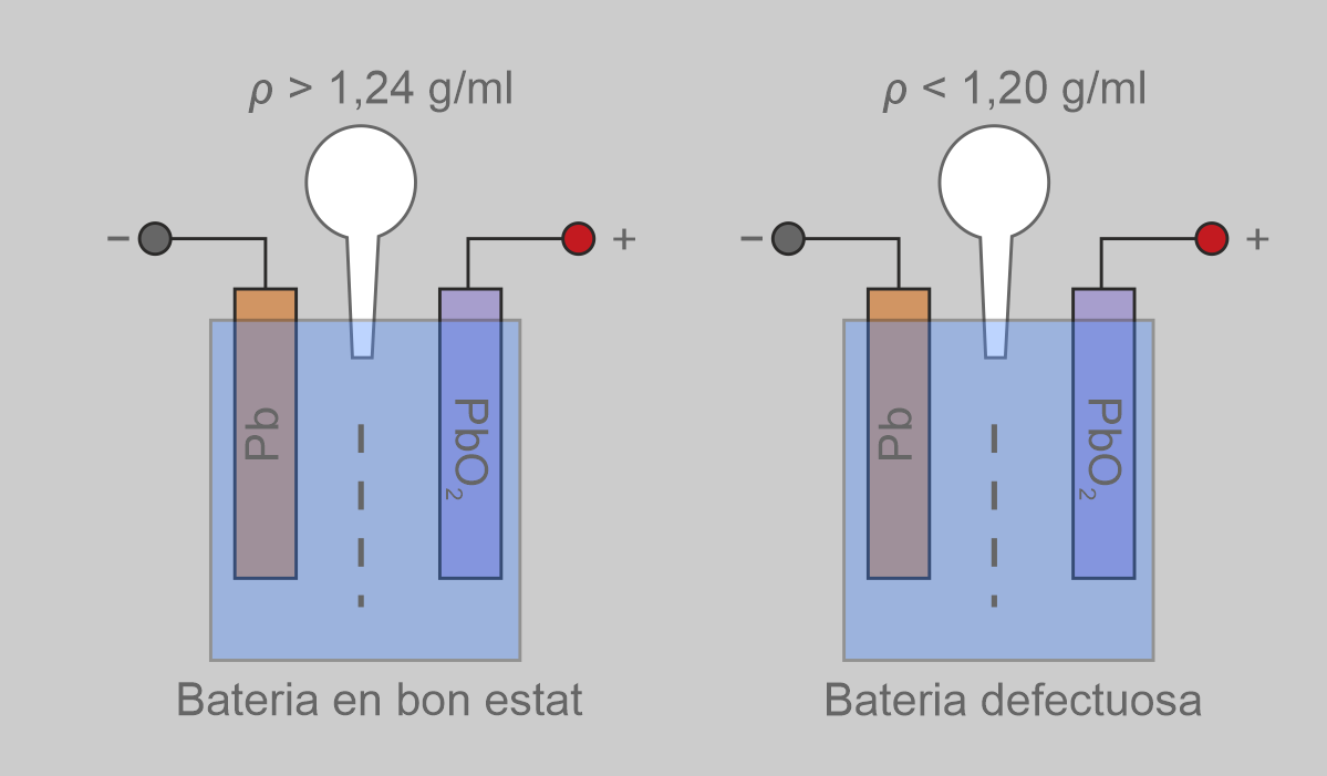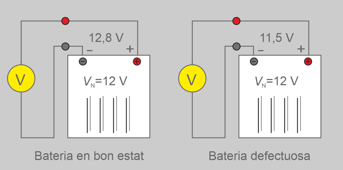 - Revisió dels borns de la bateria. Per reduir les pèrdues elèctriques de la bateria, cal mantenir-ne els borns i les connexions netes de restes d’òxids i de sals que acostumen a formar-se en els processos de gasificació. La neteja d’aquestes restes s’ha de fer amb estris sintètics (com ara plàstics, mai metàl·lics) i, un cop finalitzada la neteja de les connexions, cal protegir-les amb vaselina neutra i collar-les fermament.
