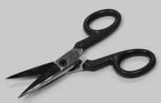 Les tisores d’electricista s’utilitzen per tallar i pelar conductors petits. Són més curtes i tenen les fulles més amples que altres tisores. Les tisores d’electricista han d’estar protegides. En la figura es mostren unes tisores d’electricista.