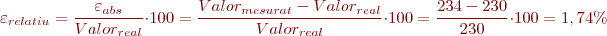 S’ha de calcular amb el quocient entre l’error absolut i el valor real: