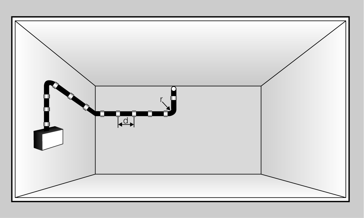 - El traçat de les canalitzacions es farà seguint línies verticals i horitzontals, o paral·leles a les arestes de les parets que limiten el local on s’efectua la seva instal·lació.