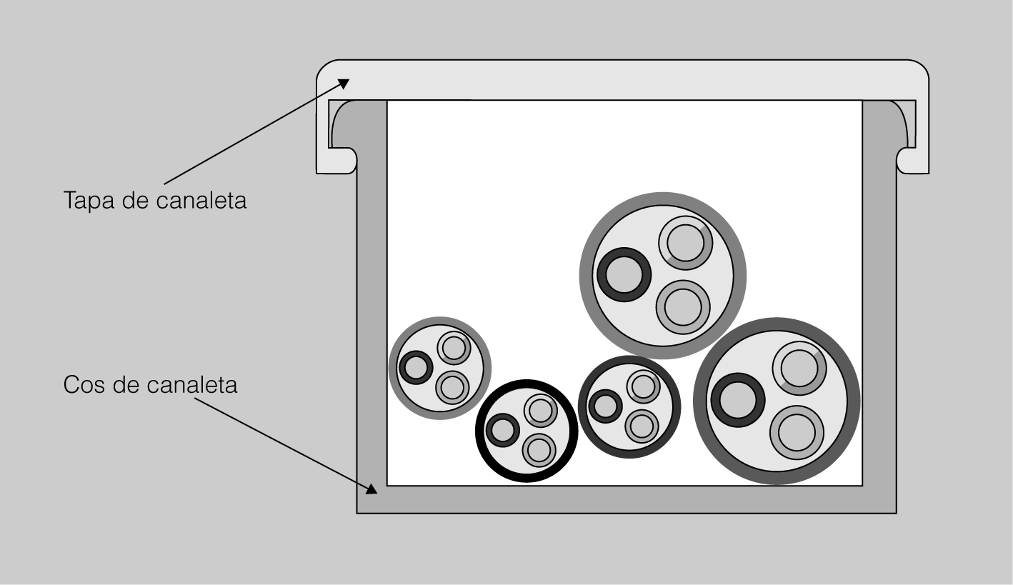 En les canals protectores de grau de protecció inferior a IP4X o classificats com a “canals amb tapa d’accés que es poden obrir sense ferramentes”, segons la norma UNE-EN 50.085-1, només es pot utilitzar cable aïllat sota coberta estanca, de tensió assignada mínima 300/500 V.