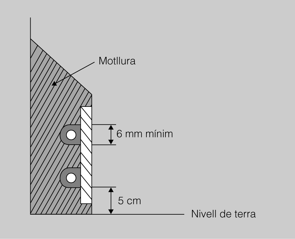 - La instal·lació d’aquests aparells en marcs metàl·lics es pot fer sempre que els aparells utilitzats estiguin concebuts de manera que no permetin la possible posada sota tensió del marc metàl·lic, i es connecta al sistema de terra.