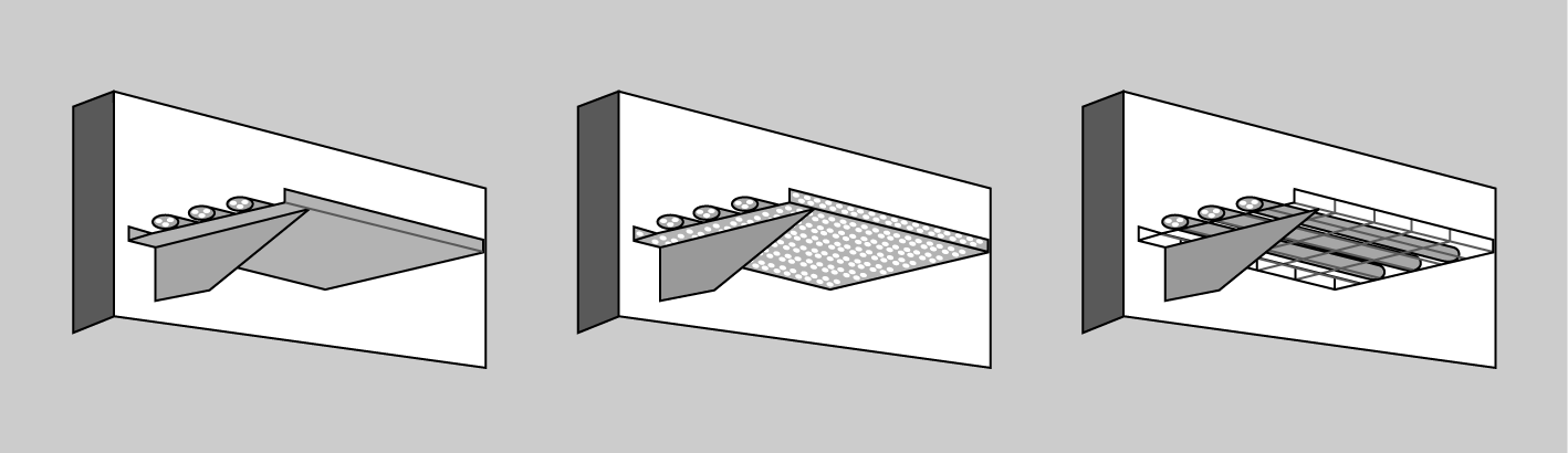 - Instal·lació en fals sostre. Les canalitzacions poden anar entre dues superfícies paral·leles com en el cas de falsos sostres.