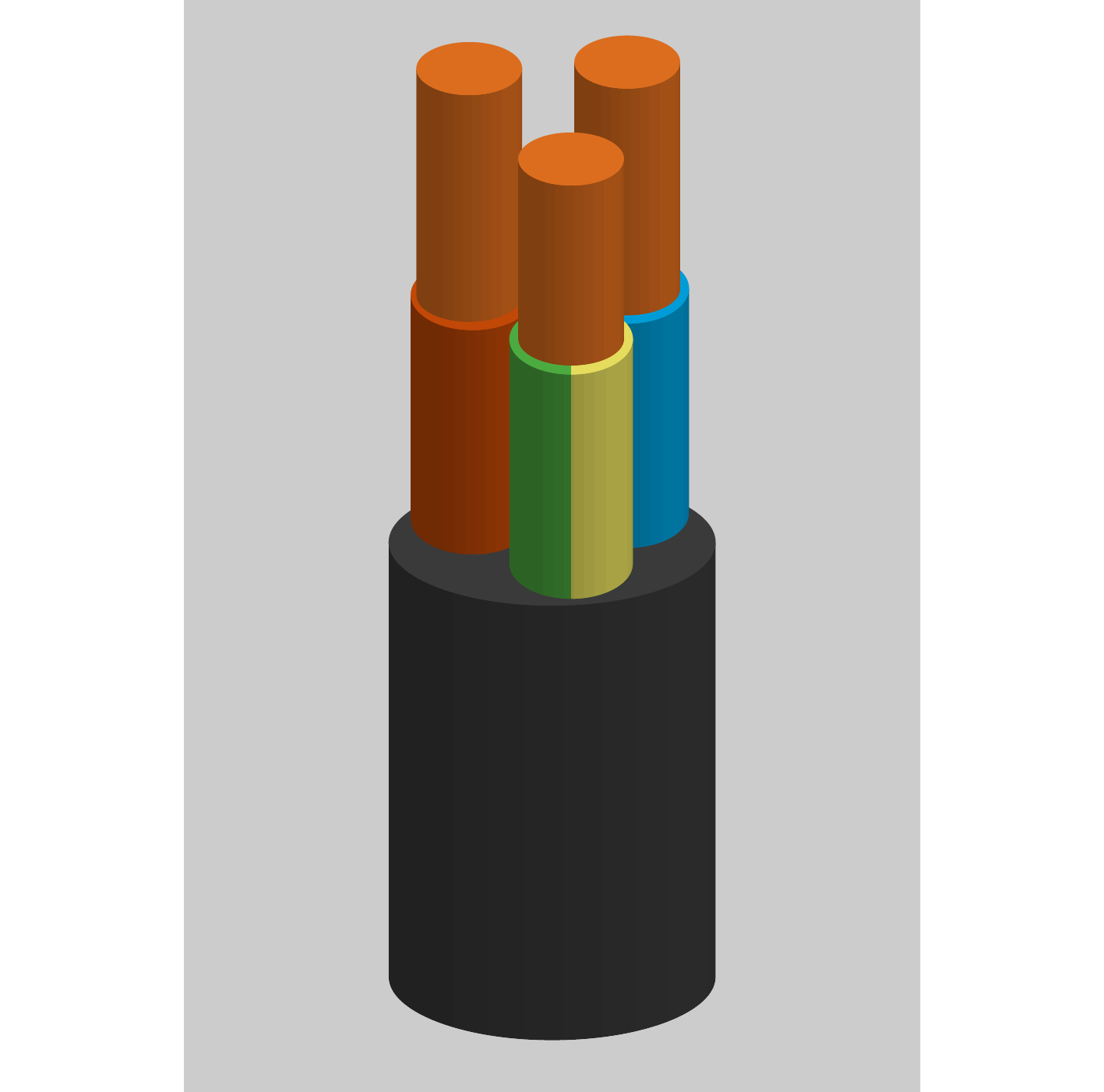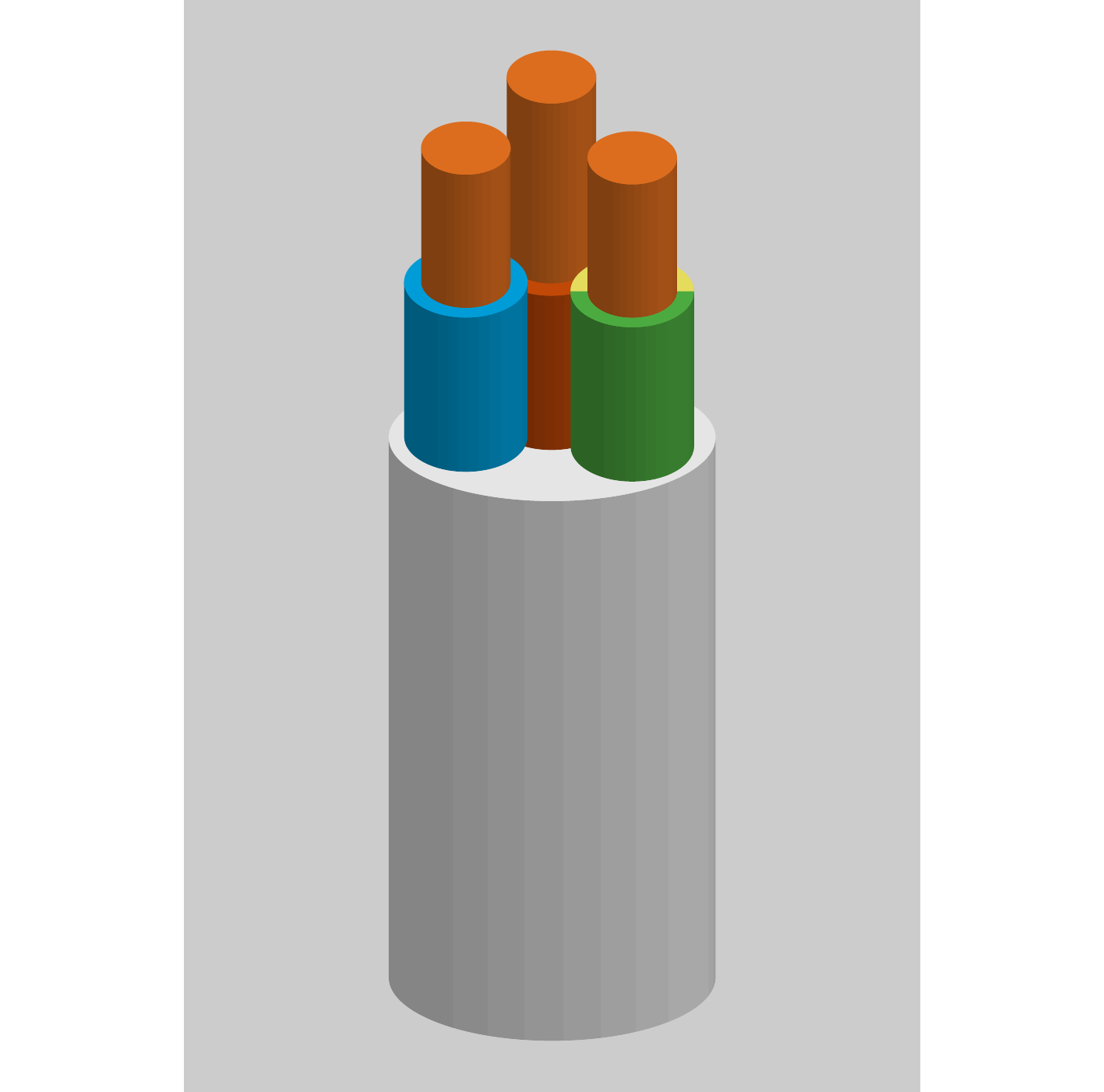| Cable RV-K | Cable de tensió assignada 0,6/1 kV, amb conductor de coure classe 5 (-K), aïllament de polietilè reticulat (R) i coberta de policlorur de vinil (V) |