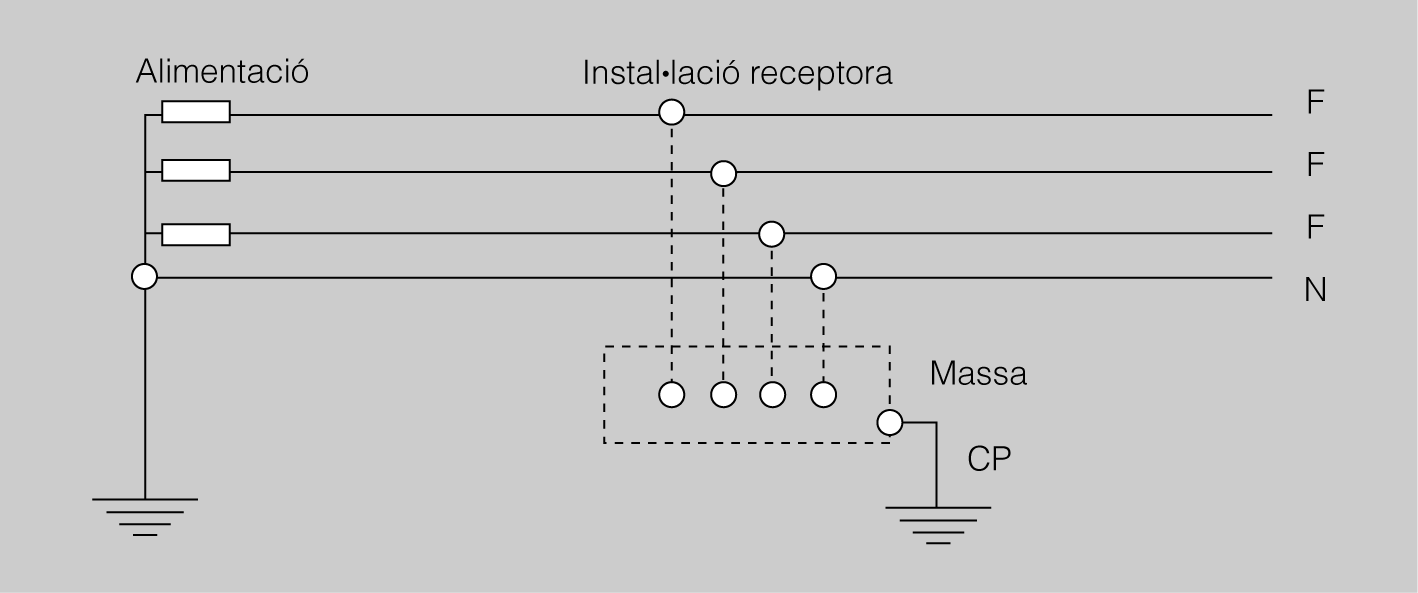 N = masses connectades directament al punt de l’alimentació connectat al terra (en altern, normalment aquest punt és neutre).