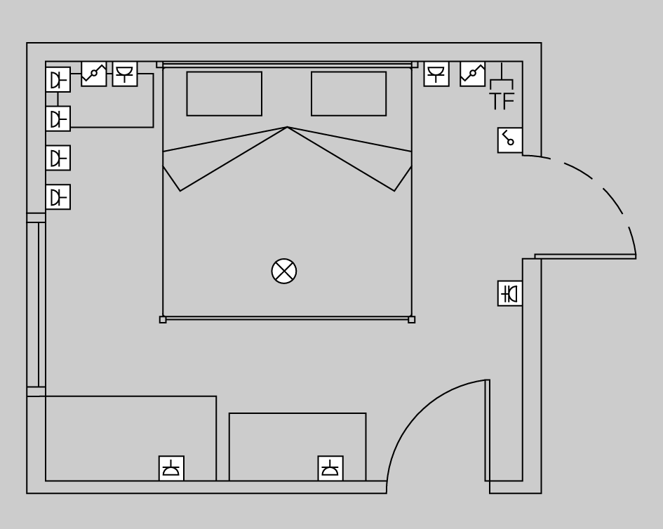 Una presa de corrent prevista per a la connexió d’aparells d’il·luminació que estigui comandada per un interruptor (per exemple, tauletes de nit o làmpada de peu al menjador) es considera del C1.