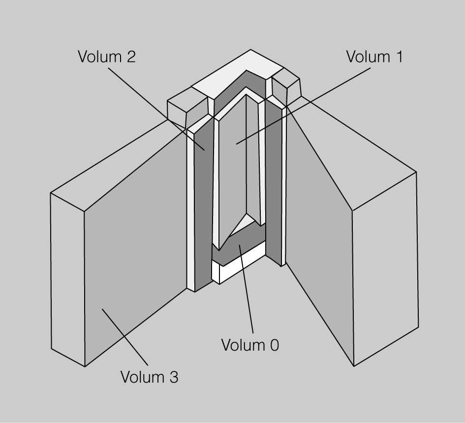 En la figura es pot observar la representació dels quatre volums en conjunt.
