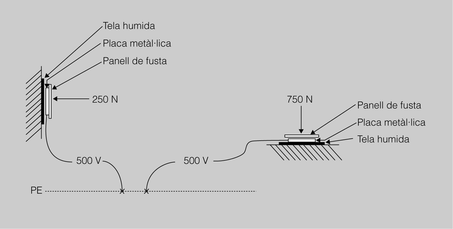 - Aïllament capaç de suportar una tensió d’assaig de 500 V en valor eficaç en altern durant 1 minut.