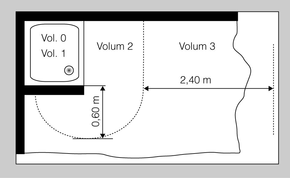 Per a les instal·lacions elèctriques en locals o habitatges que tenen una banyera o dutxa es tenen en compte quatre volums 0, 1, 2 i 3 ben delimitats per les seves mesures.
