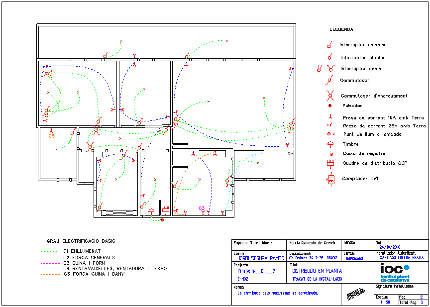 - Elaborar el dimensionament de la instal·lació. Quins circuits i elements hi haurà, segons l’REBT i segons el nivell de confort.