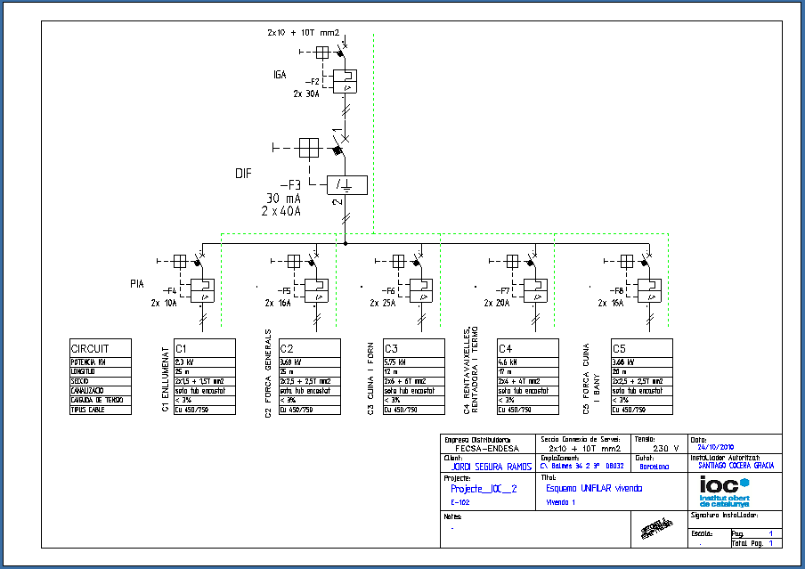 - ELEC-2: pdf amb l’esquema unifilar de la instal·lació per circuits.