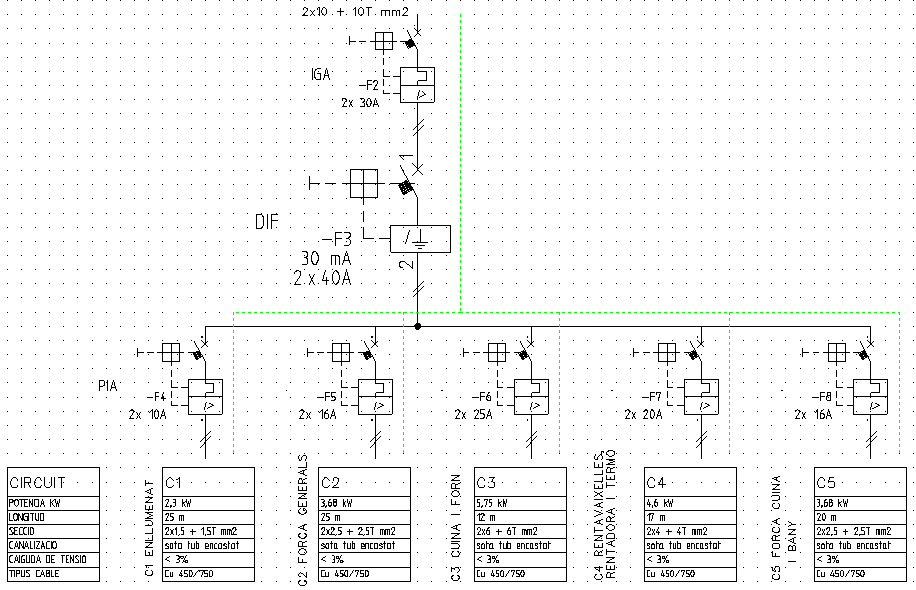 Cal remarcar que en els conductors s’inclouen també les seccions de 4 mm² i 6 mm² corresponents als circuits C4 i C3, respectivament.