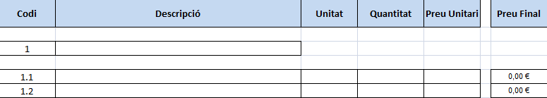 Consulteu l’apartat “Fulls de càlcul per al dimensionament d’instal·lacions, valoració i facturació” per conèixer com s’ha d’instal·lar el programa Calc i com es pot construir la taula del pressupost.