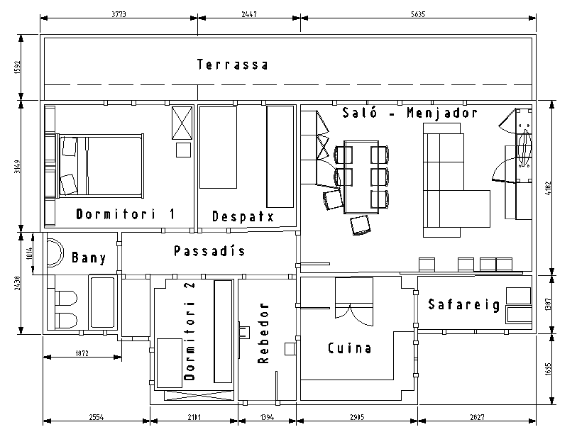 D’aquesta forma es poden trobar les dimensions de cada estança de tot l’habitatge.