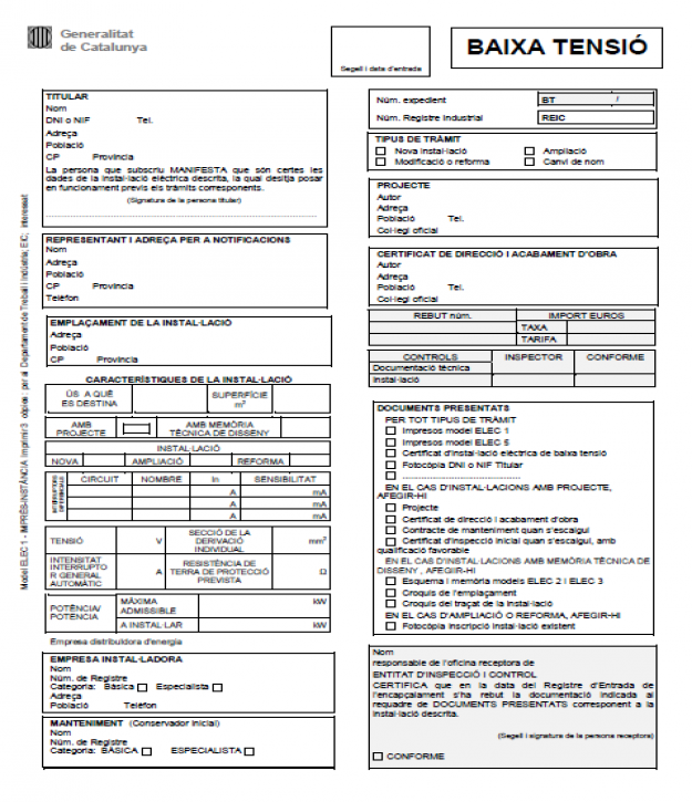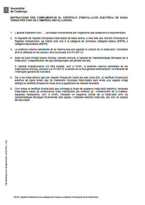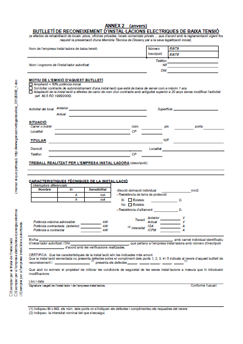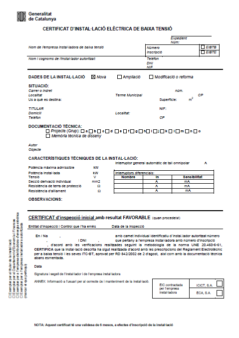 Els documents, els models dels quals hem reproduït tot seguit, són els que precisament l’instal·lador autoritzat en baixa tensió ha d’emetre un cop finalitzada la instal·lació elèctrica de baixa tensió.