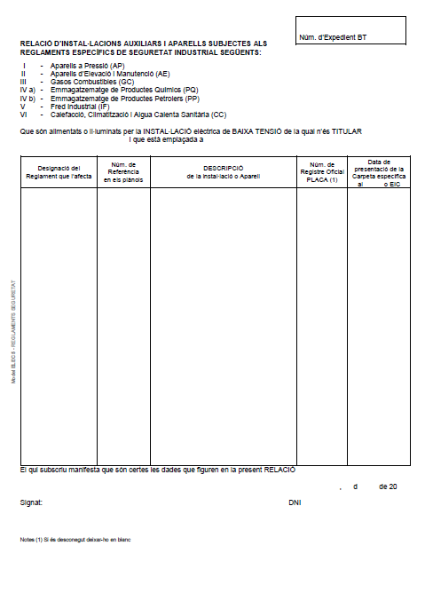 Documents i impresos normalitzats requerits per posar en servei instal·lacions d'enllaç