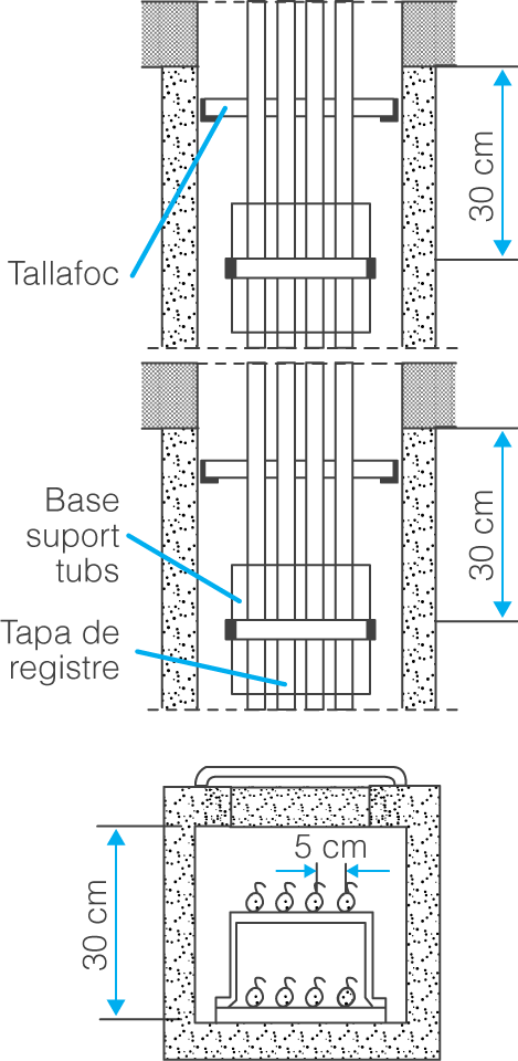 - Les tapes de registre han de tenir una resistència al foc mínima de RF 30.