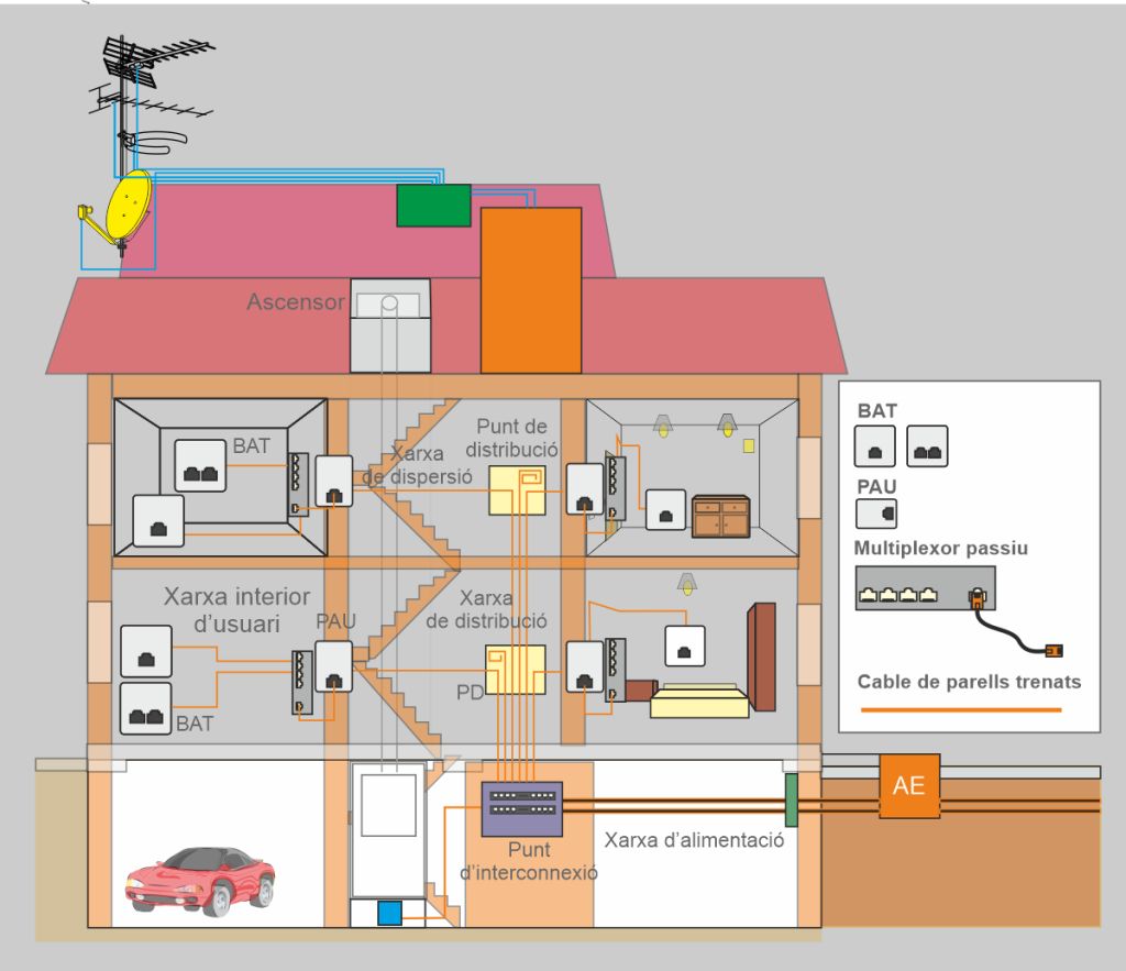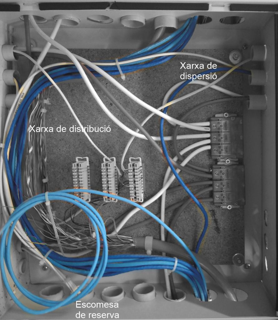 La xarxa d’accés de cable de parells trenats de l’edifici permet la connexió a la xarxa de telefonia bàsica dels operadors.
