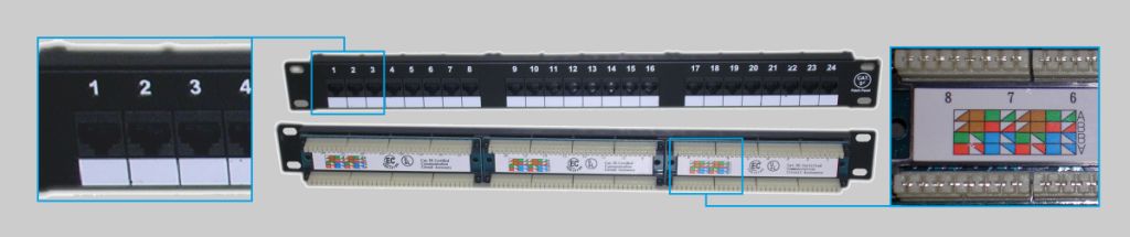 Quan en un punt d’una instal·lació cal la connexió d’una quantitat elevada de cables de parells trenats s’utilitzen panells de connexió. Cada panell de connexió allotja un nombre de connectors determinat segons la seva capacitat: 12, 24, 36 i 48 connexions.