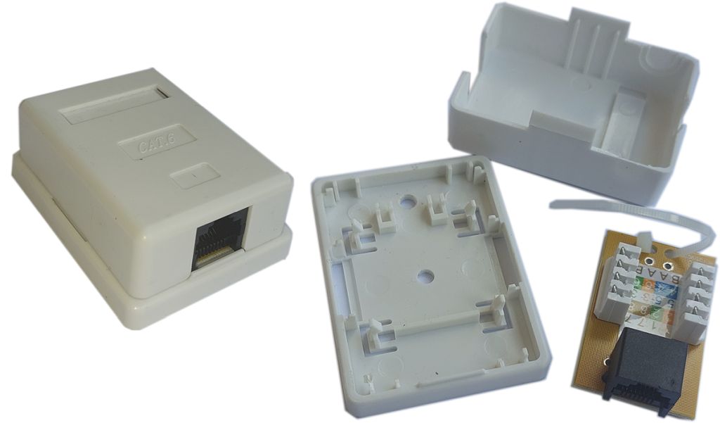 La instal·lació de la BAT es realitza normalment en una caixa de mecanismes universal amb els accessoris que permeten la connexió del connector RJ-45 femella (figura). La fixació del connector a la placa de mecanismes es realitza normalment mitjançant una connexió de tipus Keystone.