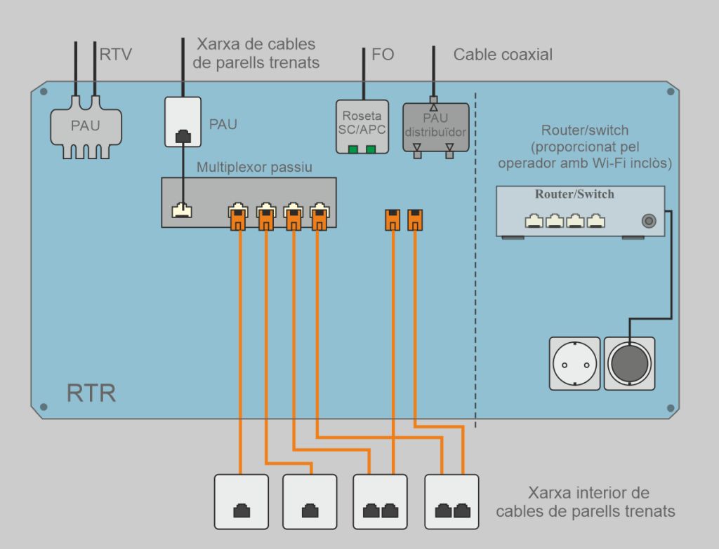 - Instal·lació del PAU i del multiplexor passiu en el registre de terminació de xarxa.