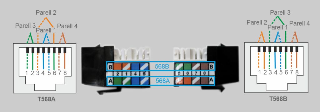 Els diferents trams de la xarxa de cable de parells trenats (xarxa de distribució i dispersió, xarxa interior d’usuari…) s’uneixen utilitzant elements de connexió específics d’aquest tipus de xarxa (connectors RJ-45, panells de connexions…).