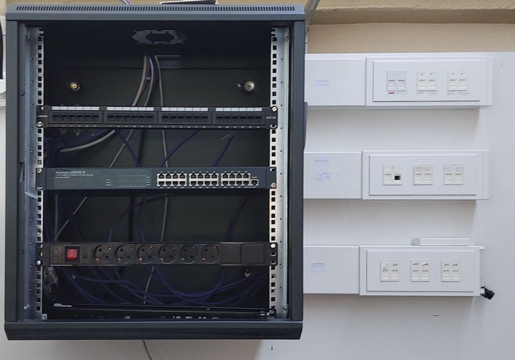 En edificis d’us no residencial (escoles, oficines, etc.), en els quals s’instal·len xarxes de dades, tot el cablejat finalitza en un armari de distribució (rack), que emmagatzema tant els elements passius de la xarxa (panells de connexions, guies passacables…), com els elements actius (commutadors, encaminadors, etc.).