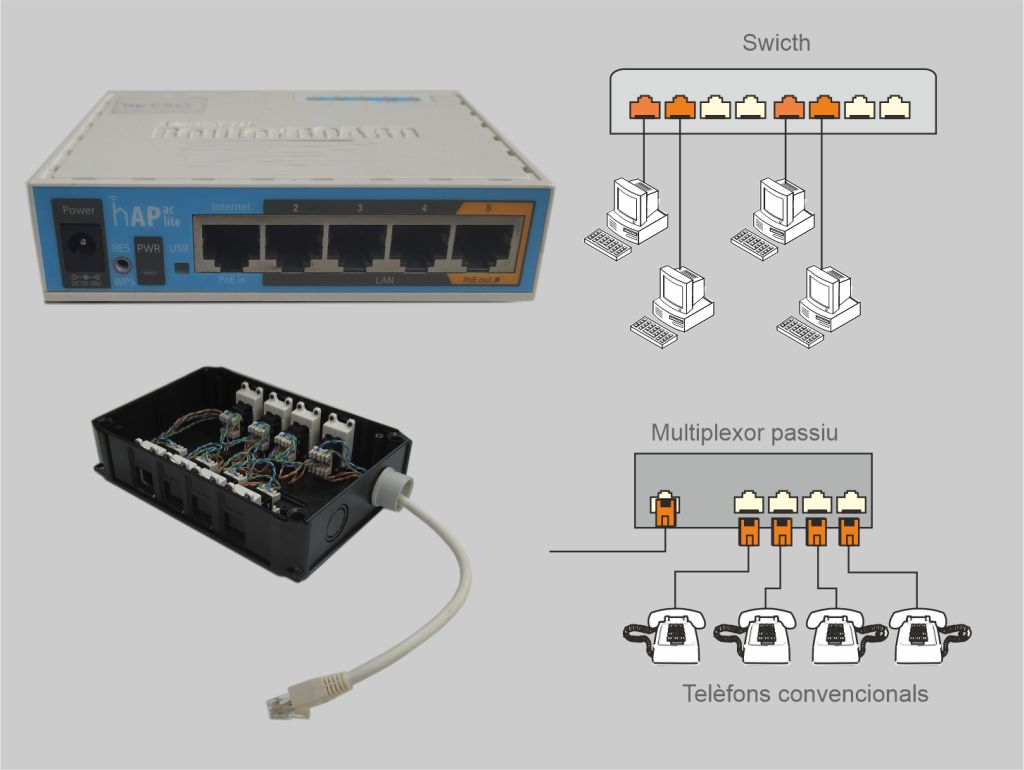 La funció d’aquests dos dispositius és diferent, però, com podeu veure en la figura es poden utilitzar de manera conjunta en una instal·lació d’ICT, realitzant funcions diferents.