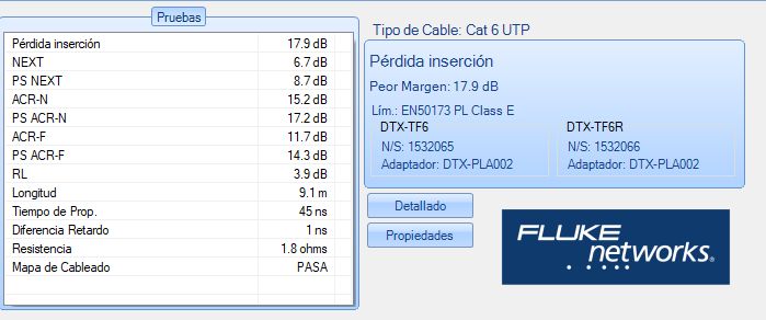 Per certificar la correcta instal·lació d’un tram d’una xarxa només cal obtenir una prova amb resultat PASSA. En cas contrari (FALLA) caldrà revisar la instal·lació.