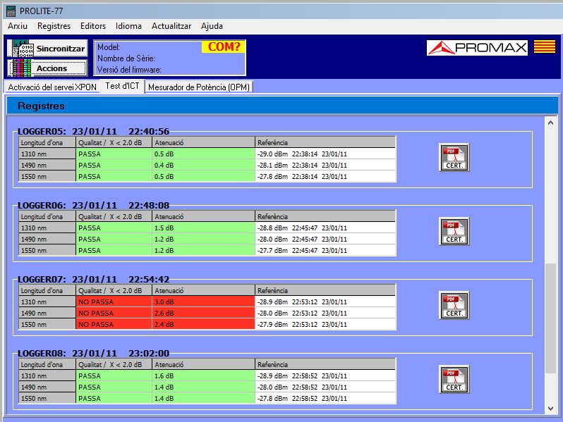 Amb aquest programari podem recollir les mesures emmagatzemades i generar un informe amb totes les mesures realitzades en la instal·lació. Aquest informe s’ha de lliurar al client com a garantia que s’ha realitzat la certificació de tots els trams de la xarxa i que el resultat ha estat satisfactori.