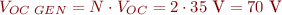 En la connexió en paral·lel, totes les plaques tenen la mateixa tensió, per tant la tensió de circuit obert del generador fotovoltaic (VOC GEN) és: