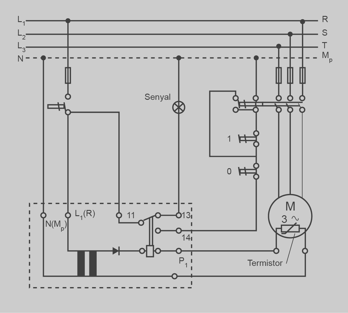 Per comprovar el circuit de control, s’ha d’utilitzar un multímetre digital per comprovar la tensió d’alimentació i els contactes d’arrencada del motor (figura).