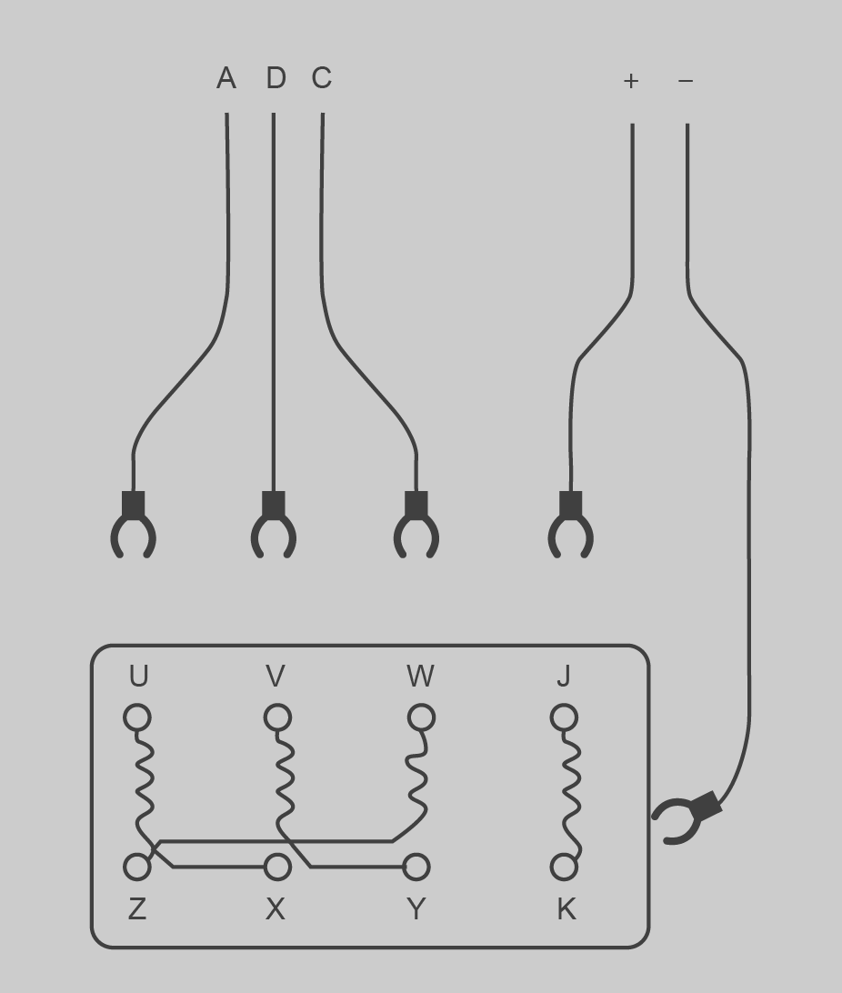 A la figura teniu la caixa de borns d’una màquina síncrona amb el seu bobinatge de camp.