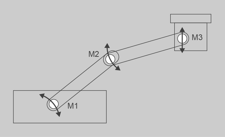 La figura mostra l’esquema simplificat d’una grua elevadora amb els motors que la formen.