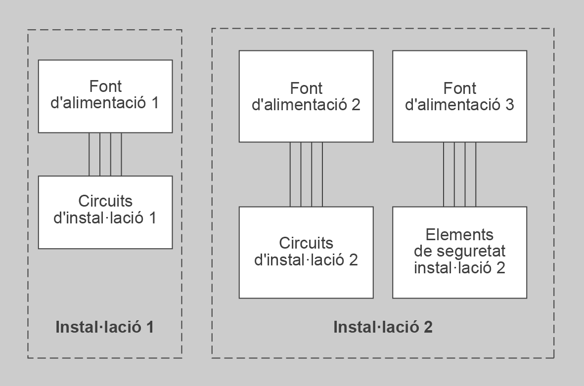 - Una alimentació individual per separació elèctrica si la font es troba fora dels volums 0, 1 i 2.