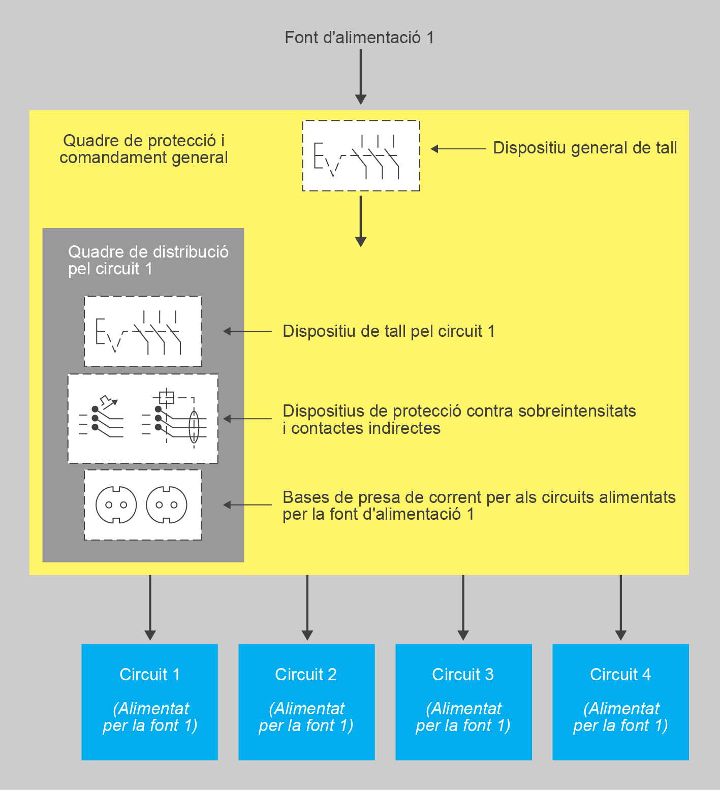 - Tall automàtic amb un interruptor diferencial de 30 mA de sensibilitat.