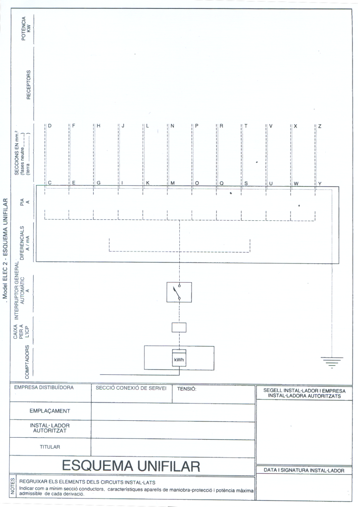 - Memòria tècnica: esquema unifilar. Model ELEC-2